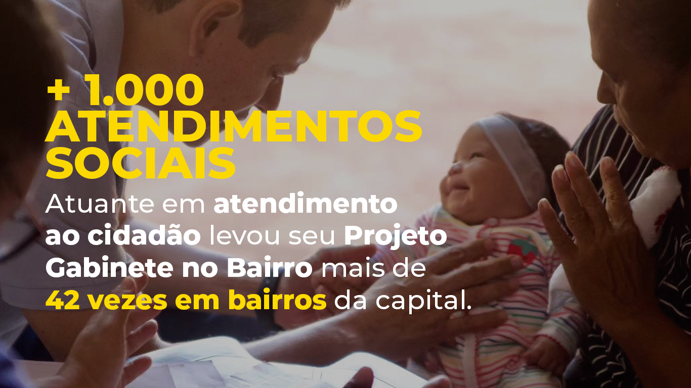 Temos o Projeto Gabinete no Bairro, que tem por objetivo ajudar a população a alcançar os seus direitos na esfera jurídica e social.